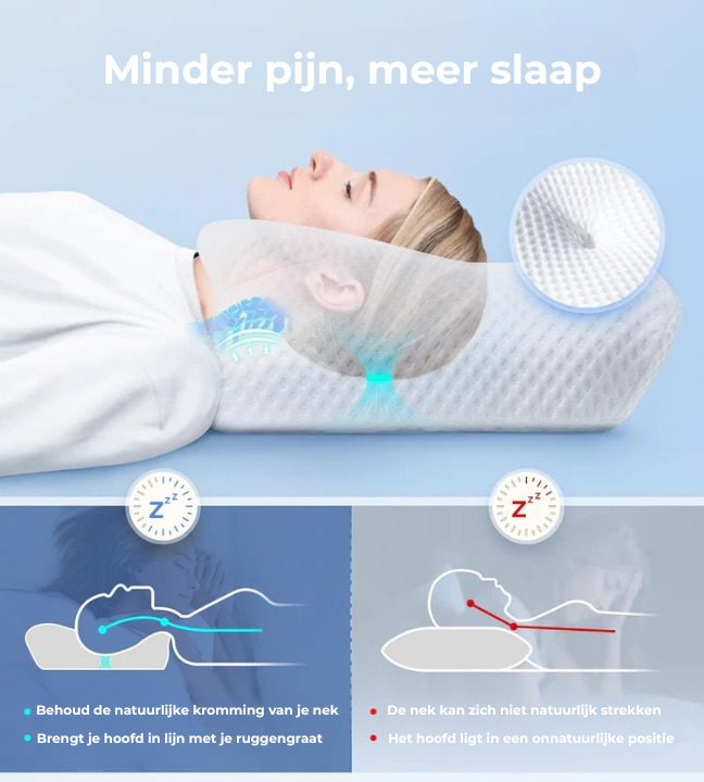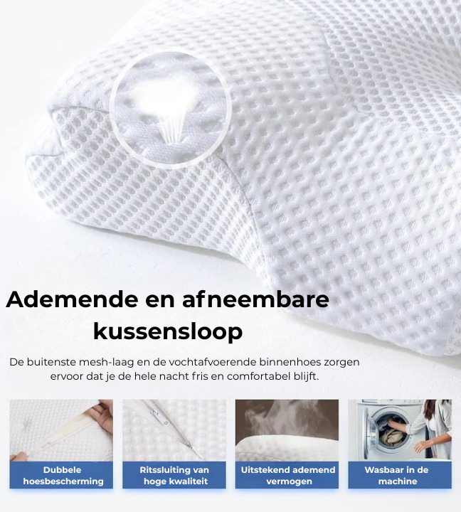 Ons geprezen kussen is zorgvuldig ontworpen en wordt aangeraden door toonaangevende chiropractors. Het past zich moeiteloos aan de natuurlijke uitlijning van je wervelkolom aan, biedt superieure ondersteuning en helpt nekpijn tijdens de nacht te voorkomen.