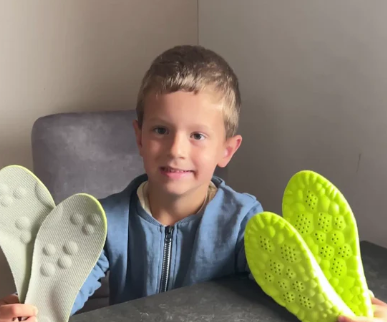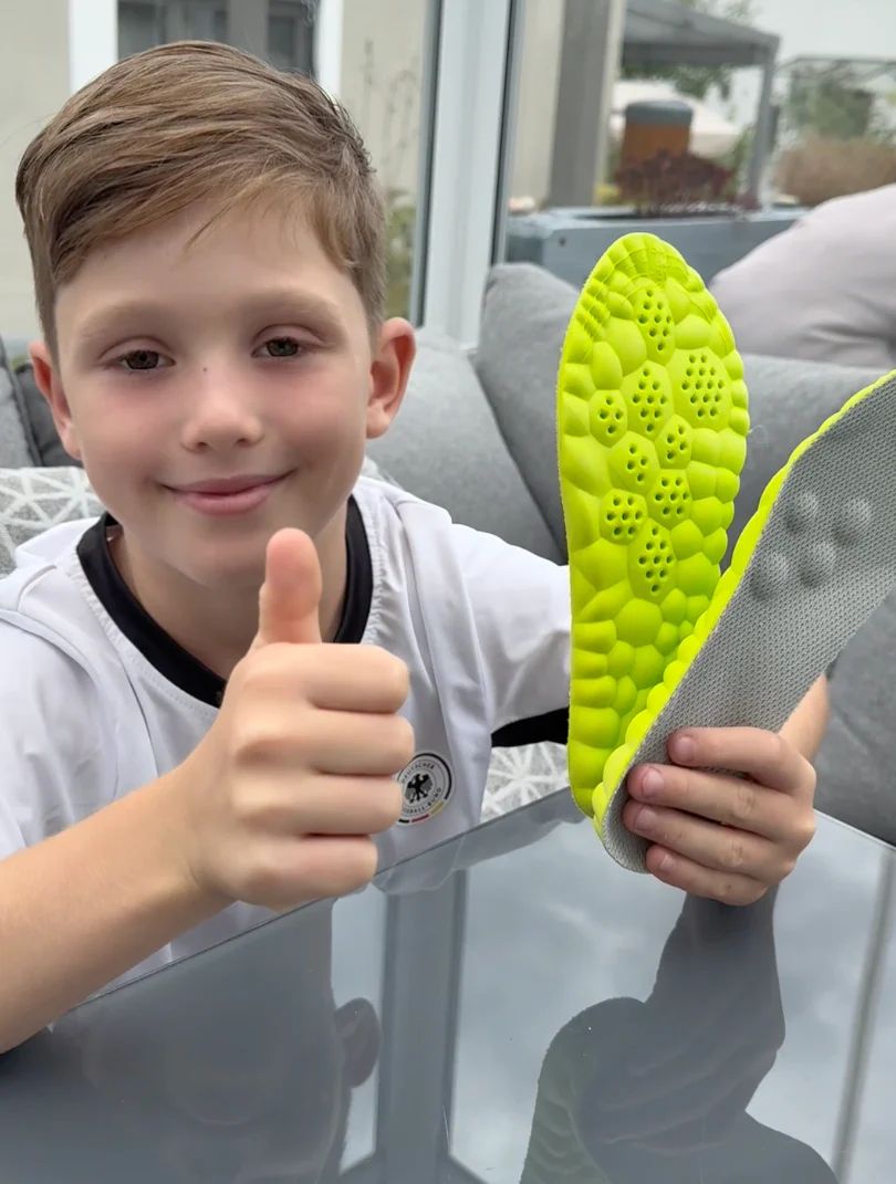 Geen harde, volwassen steunzolen maar flexibel, dempend en anatomisch afgestemd op kinderen van 5 t/m 16 jaar.